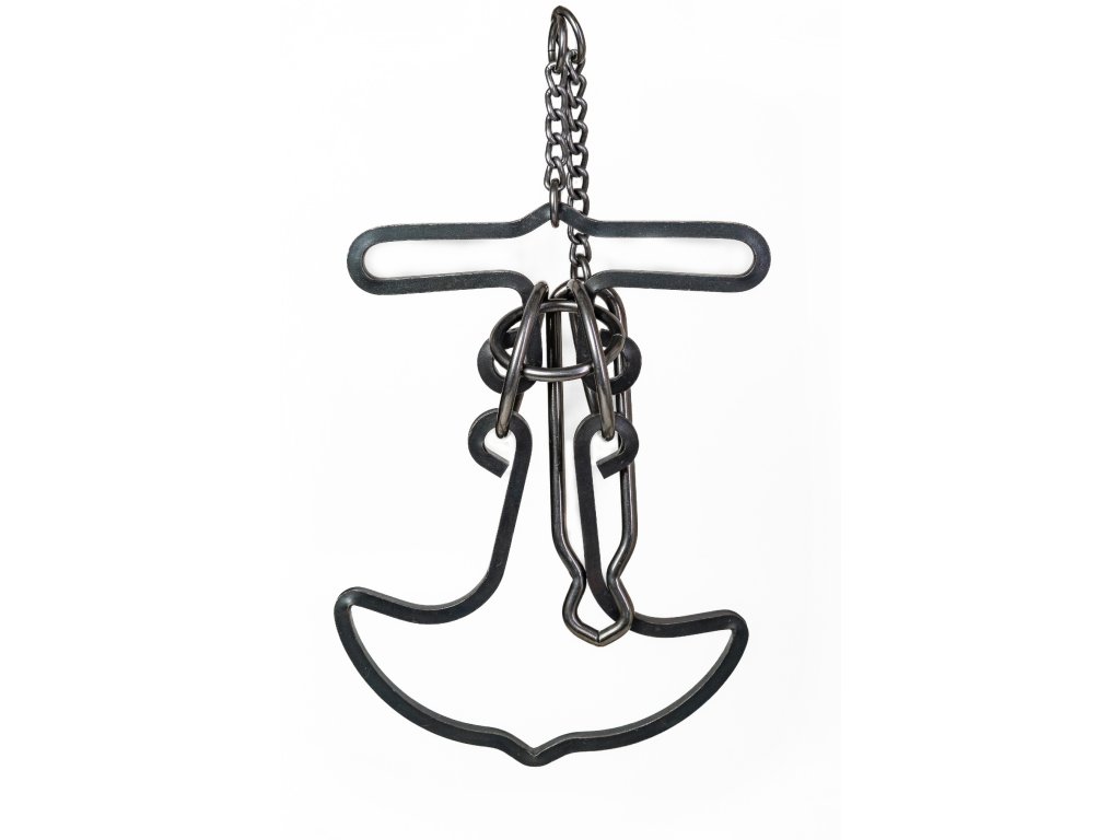 Hlavolam má tvar kotvy, vypadá moc hezky zavěšený jako dekorace.