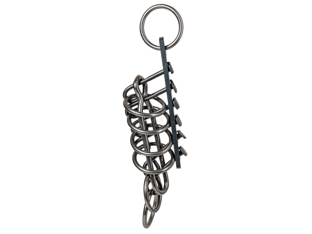 Hlavolam je známý pod názvem "čínské kroužky" nebo "Cardanovy kroužky". Tento hlavolam má překvapivě jen jedno řešení, jehož délka závisí exponenciálně na počtu kroužků. My jste to nikdy nepočítali, ale prý je-li kroužků jedenáct, strávíte nad jeho řešením neuvěřitelných 1023 tahů! Naše verze má kroužků 6.